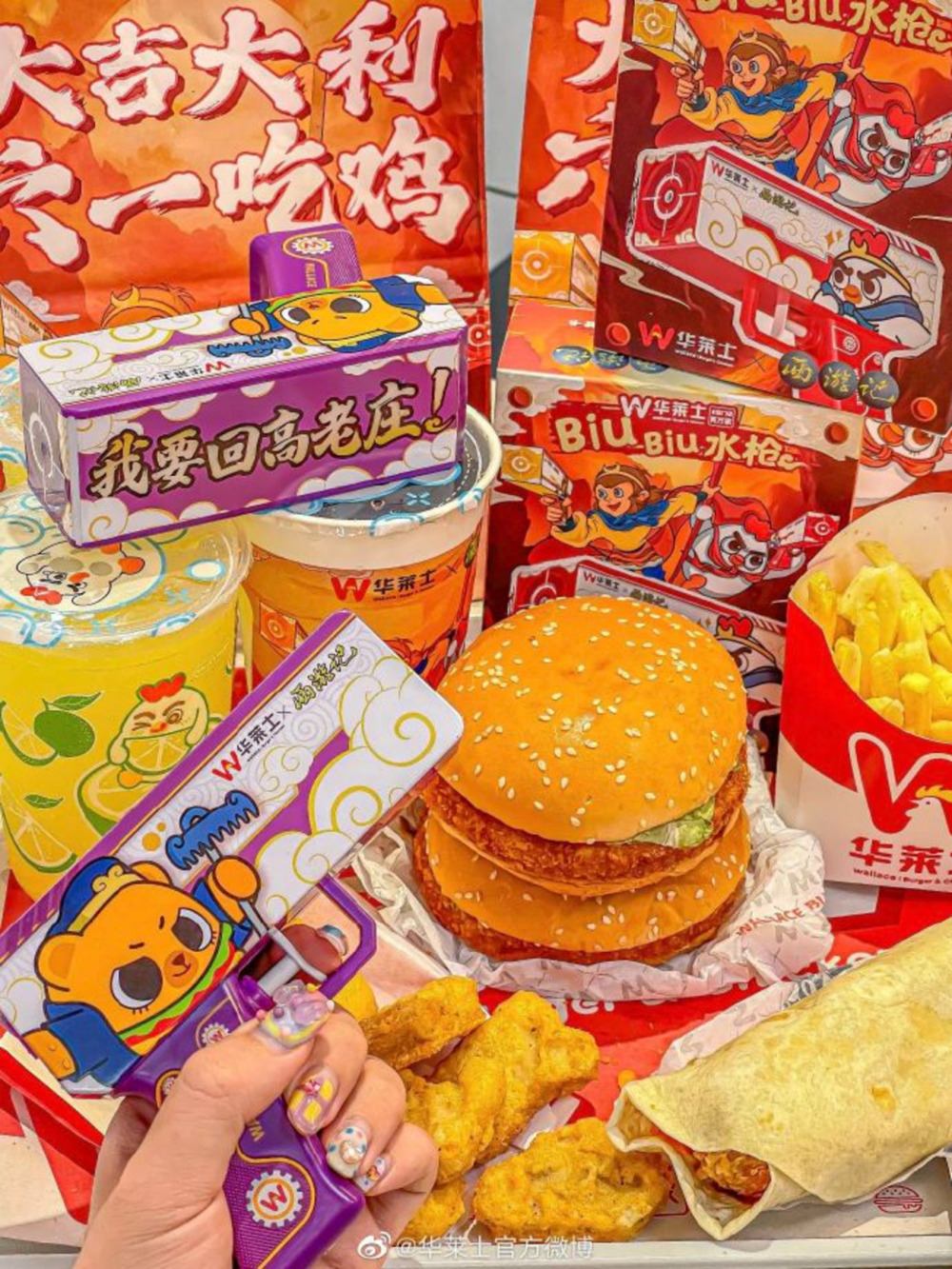 华莱士携手央视动漫《西游记》带来联名合作,以「大吉大利,六一吃鸡」为主题,邀请用户一起来华莱士过六一,并 get 猴哥同款水枪。此外,华莱士还截取片中经典画面,配以符合当下语境的文案,邀请用户一起来开脑洞。