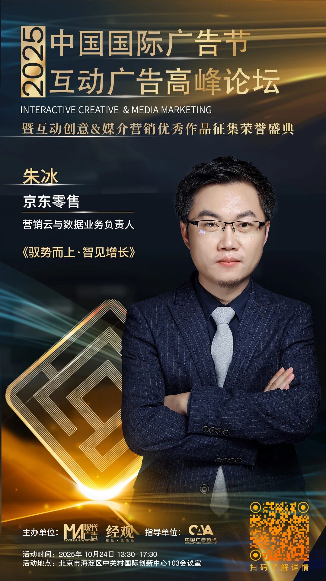 京东零售-营销云与数据业务负责人朱冰确认出席2025中国国际广告节互动广告高峰论坛演讲。