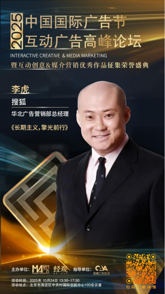 搜狐华北广告营销部总经理李虎确认出席2025中国国际广告节互动广告高峰论坛演讲。