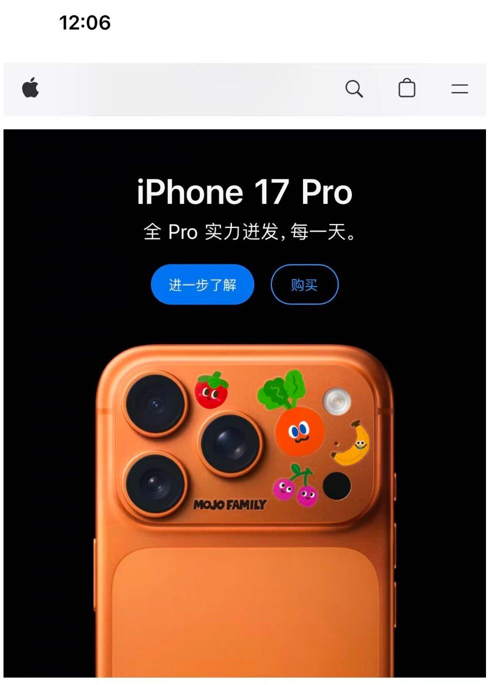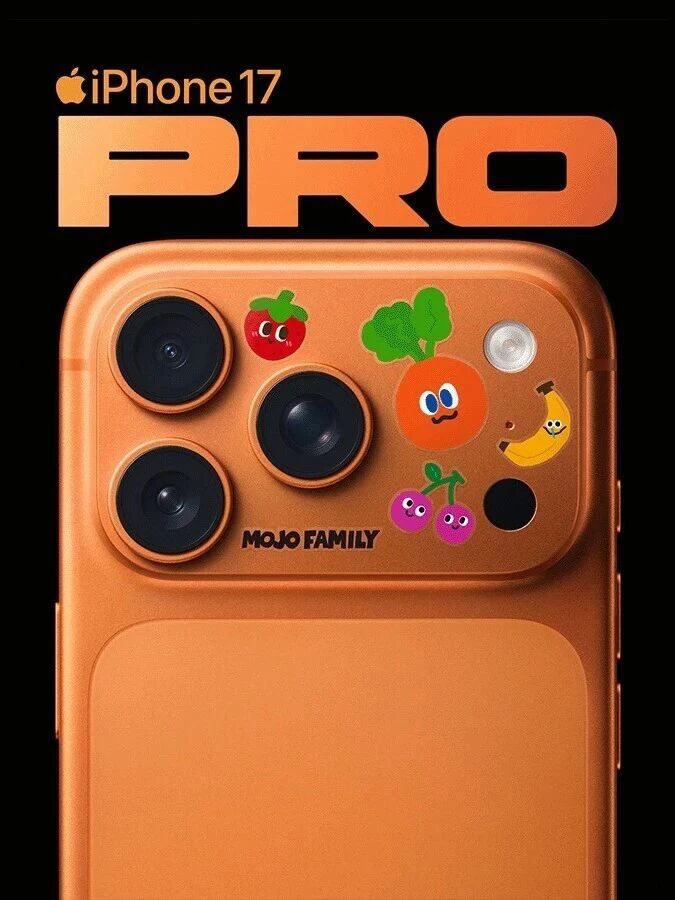 贴纸源自STAYREAL旗下IP「MOJO FAMILY」蔬果家族,苹果官网及户外广告牌的iPhone 17 Pro已采用同款“痛机”造型。
