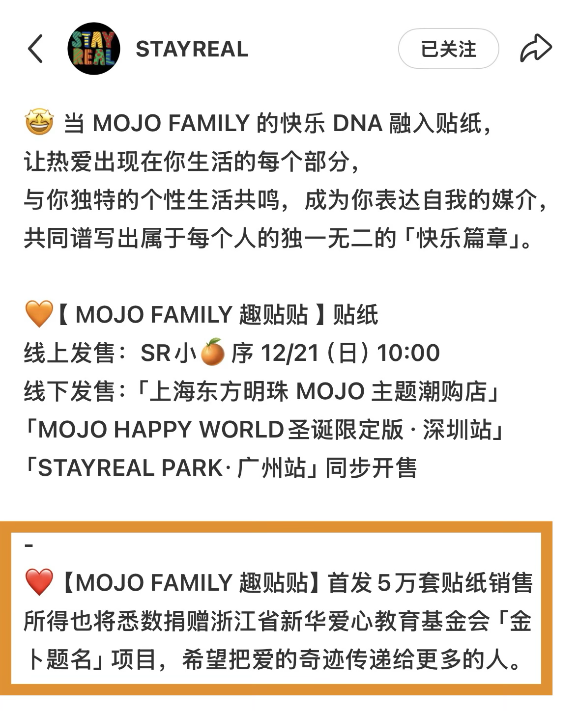 值得关注的是,STAYREAL表明此次全部销售所得将捐赠浙江省新华爱心教育基金会「金卜题名」项目,实现潮流与公益的双重联动。
