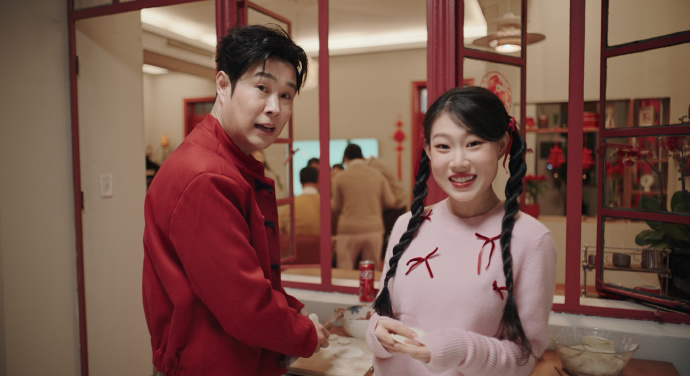 小沈阳父女的加盟,为这则广告注入了极强的生活感与亲和力。作为国民度颇高的喜剧明星,小沈阳自带幽默、接地气的标签,他的形象既契合春节的喜庆氛围,又能以轻松自然的方式传递 “旧俗新玩” 的创意理念,让观众不会对营销内容产生抵触心理。女儿沈佳润 Nina 的参与则进一步强化了 “家庭团聚” 的核心场景,年轻的气息为广告增添了活力,也成为连接年轻受众的桥梁。这种 “国民家庭” 式的共创模式,让广告不再是单向的品牌宣传,更像是一场普通家庭的新年分享,拉近了品牌与用户之间的距离,让 “带着家人们一起过个很‘新’的年” 的理念显得真实而温暖。