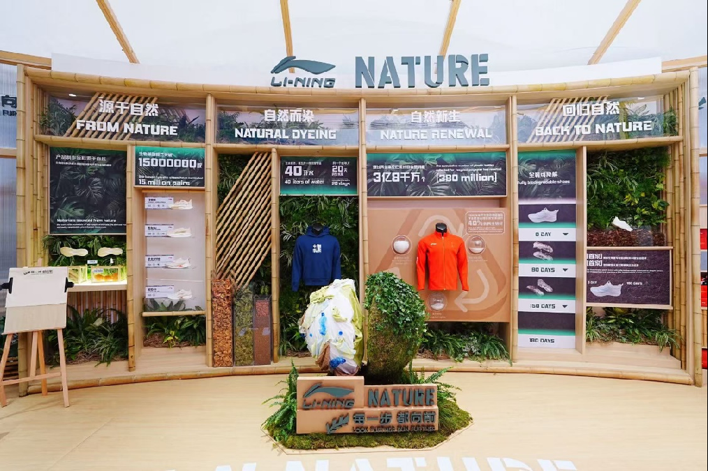 此外,“中国之家”也积极推广绿色体育理念。秉持“每一步都向前”的可持续发展口号,李宁积极构建环保产品“全链路”,“绿色体育”展区呈现李宁在生物基材料、无水着色工艺、再生环保纱线及具有突破探索性的运动鞋全降解技术,体现中国专业运动品牌在绿色体育领域实践成果。