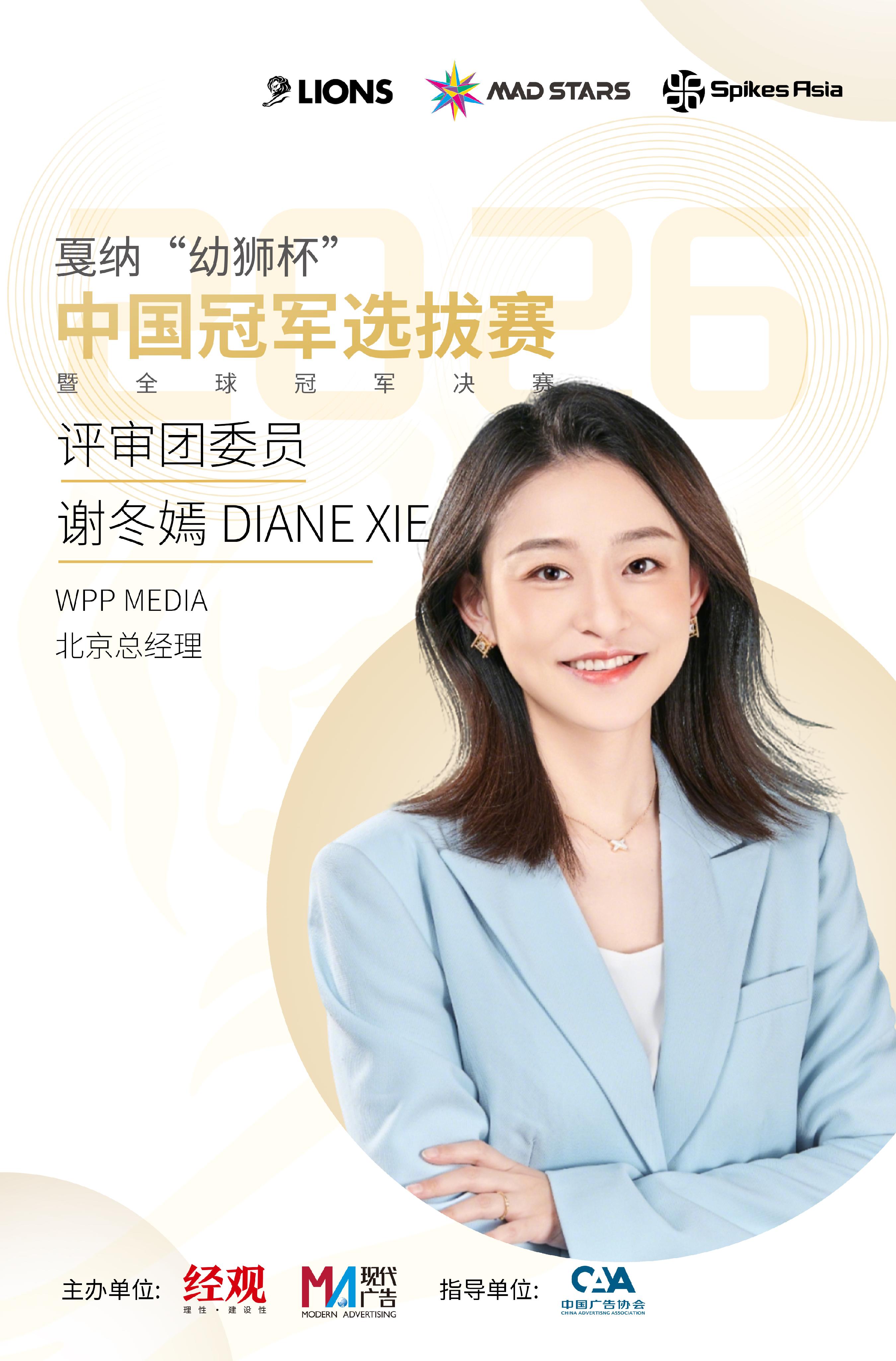 2026戛纳“幼狮杯”中国冠军选拔赛评委阵容正式揭晓,WPP Media总经理谢冬嫣将担任评审团成员。