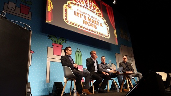 一场名为《交易的艺术:让我们拍摄电影吧!》的论坛在周一举行。演讲嘉宾包括著名制片人、Gearhead 影视公司的首席执行官Adam Carolla;Gearhead公司的制作总裁Nate Adams 以及好时公司的首席营销官Peter Horst(是的,你没看错—就是著名的糖果制造品牌)。