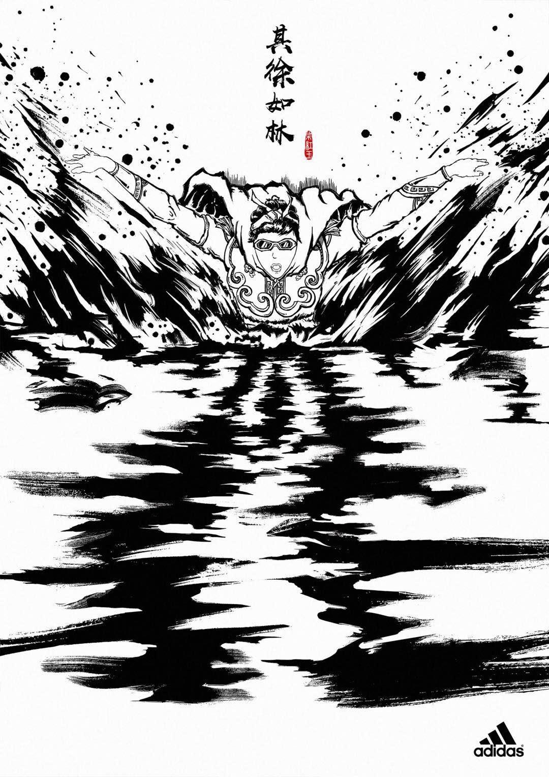 比如,为了激励年轻女性对于体育运动的兴趣和热情,阿迪达斯近日便开展了一项新活动,将中国古代四大巾帼英雄与现代的四项体育运动相结合,德国的创意机构Miami Ad School为此次活动设计了一组平面海报,水墨画的形式与现代元素相融合,非常具有中国特色。