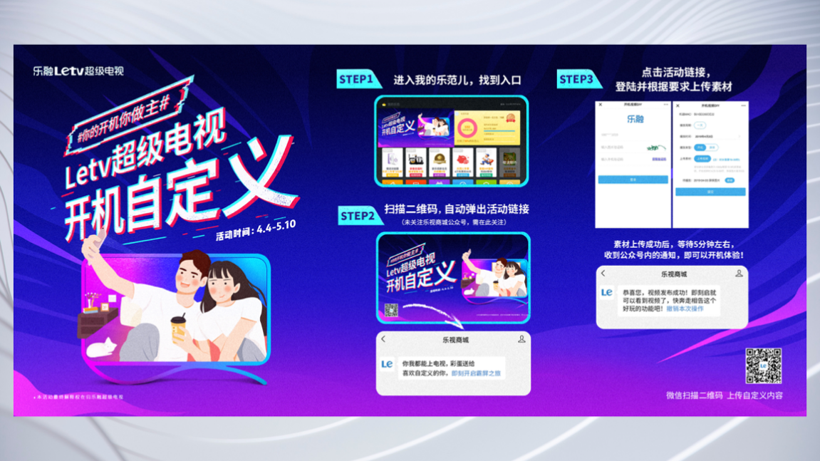 目前,在乐视超级电视上,有一项功能设置叫做开机自定义,倡导“你的开机你做主”。用户可以把自己的视频上传到平台上,然后自己设定成这台电视开机的内容。这种方式还是从用户出发,让用户可以更多地去玩这台电视,比如用户可以把手机拍的vlog放到电视上,作为一种大屏、小屏互动的一种方式。