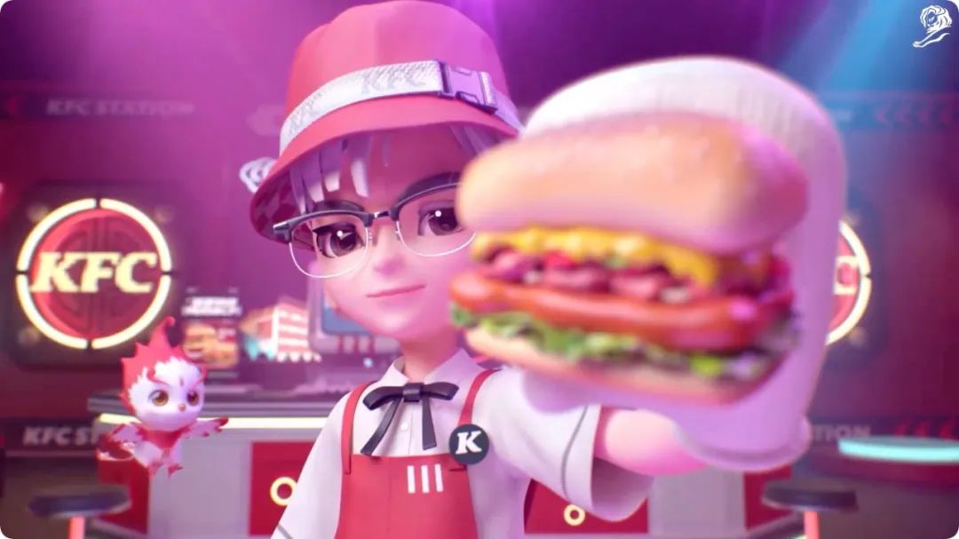 陈民辕:很高兴再次带一只狮子回中国,这一次还是肯德基的客户跟我一起,我们2019年拿了商务狮,也是肯德基的一个案例。这一次的案例我们很高兴能够获得,我们觉得这次帮肯德基客户创造了一个全新的商务的可能性,这是一个跟以前完全不一样新的可能性。除了肯德基客户能够给我们这么大空间来做这样的案子之外,我们结合了天美工作室,还有腾讯的合作伙伴。同时电通这一次也不是只有一个团队出来,我们除了基本做肯德基的团队之外,也带入我们的一个 00后团队(Dentsu Z)来帮忙一起完成这个案例,主要是因为这次在的平台我们叫超级QQ秀,这是一个非常年轻的平台,它是等于全新创造了一个元宇宙的可能性。