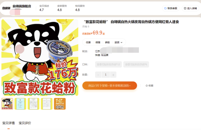 当事人于2023年2月11日在某网络购物平台“自嗨锅旗舰店”的商品标题、主图及详情页发布含有“标价176万致富款花蛤粉”等字样及图片的广告,与“食物中毒家属索赔176万”舆情事件相关联,引起央广网、青春上海等媒体的广泛报道,被指嘲讽、调侃、侮辱死者及其家属,产生极为恶劣的社会影响。