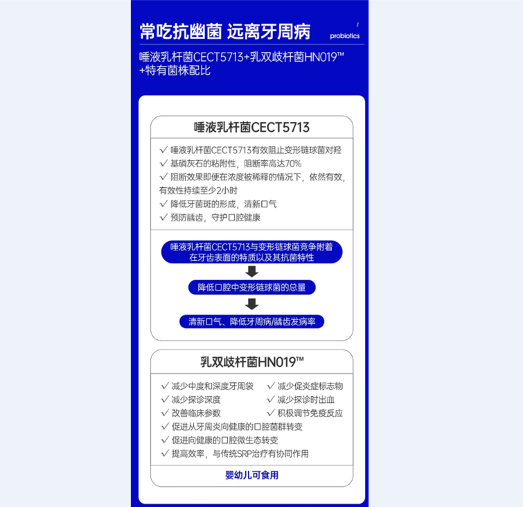 当事人利用其微信小程序,对“抗幽益生菌闪释片”产品进行推广时,发布含有“常吃抗幽菌、远离牙周病”“ 唾液乳杆菌CECT5713 有效阻止变形链球菌对羟基磷灰石的沾附性,阻断率高达70%,阻断效果即便在浓度被稀释的情况下,依然有效,有效性持续至少2小时,降低牙菌斑的形成,清新口气,预防龋齿,守护口腔健康”等宣传内容。经查,上述产品是一款普通食品。