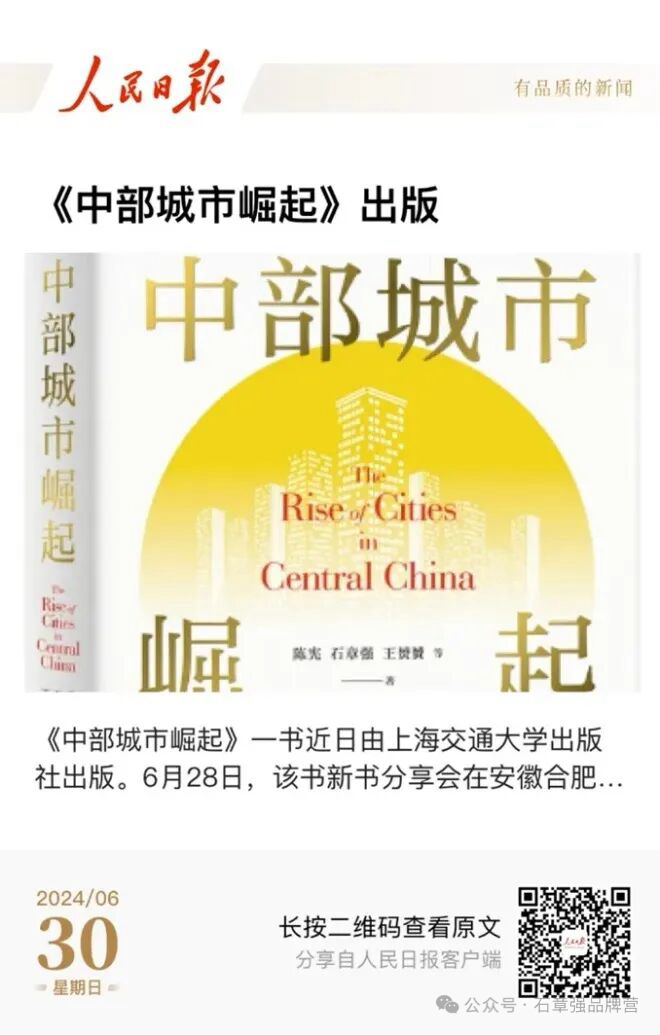 《中部城市崛起》已成为当下内卷时代政商不卷的国策读本,与总书记中部地区崛起长沙座谈会同日首发,新华社和人民日报社两大央媒联袂宣发,总书记座谈会专家陆铭教授和国家发改委经济学家范恒山秘书长联合推荐。