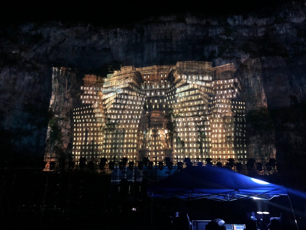 “之前笃山完全没有做过投影项目,而且这也是全球最大的一次崖壁投影,难度可想而知。”厉俊说。崖壁经过多年的风雨侵蚀,呈现出凹凸不平、纹理复杂的特征,同时还被各种大大小小的植被所覆盖,所以,可用范围非常有限。创意团队只能使用户外激光扫描设备,经过反复扫描测绘,并多次与场地人员沟通、论证最佳观赏角度、观赏距离及观众视觉范围,最终选定最合适的投射区域。
