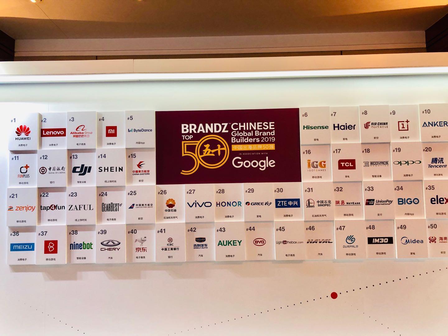 3月29日,在以“全球逐梦智慧赋能”为主题的Thinkwith Google年度峰会上,WPP和凯度联合谷歌发布了“2019年BrandZ™中国出海品牌50强”报告及榜单。
