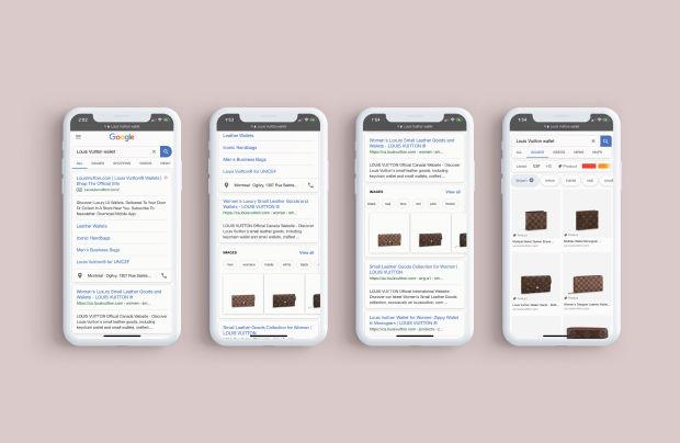 Forexample, when searching for a Louis Vuitton wallet: the secondorganic result – after the ad at the top and the Louis Vuittonwebsite – is a carousel of images, which allows users to refinetheir search with category options. Even if this is the third result,it is more than likely that searchers will gravitate to those images.