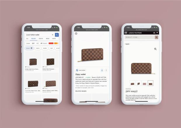 当搜索者点击图片时,会将其定向到Google产品页面,其中列出了价格和产品信息。如果他们选择这样做,他们将被引导到路易威登网站进行购买。