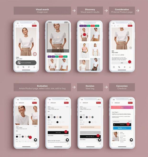 以下图片简要介绍了Pinterest购物者通过视觉搜索的旅程: