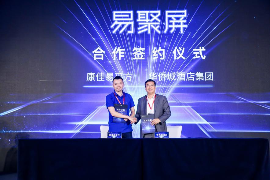 随后,康佳易平方携手华侨城酒店集团、首旅如家、北广商旅、盛阳科技、欢旅科技等众多酒店行业合作伙伴进行了合作签约仪式,以康佳易平方为营销中台,“易聚屏”将联动首批合作伙伴,彼此赋能创建酒店全场景营销新生态。