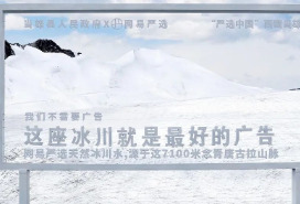 此前网易严选以湖泊为画,在天然冰川水流经的地方做了三块广告牌。文案风格一如往常那,“我们不需要广告,这座冰川就是最好的广告”,“我们不需要广告,这块湿地就是最好的广告。